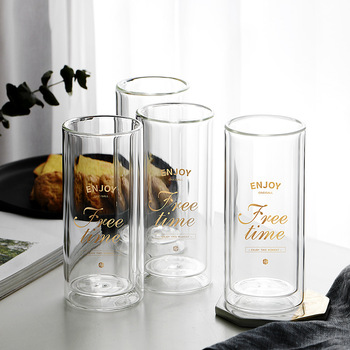 Wholesale Double Wall Highball Drinking Glass with Custom Logo Heat Resistant Cylinder Minimalist Design for Giveaways
