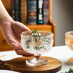 Modern Gold Rim Stem Ice Cream Glass Bowls Sunflower Dinnerware Sets Wedding Party Customized Kitchenware Food Container Fashion