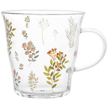 339ml Peach Flower Patterns Glass Drinkware Household Plain Drinking Water Juice Cup with Handle
