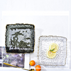 Handmade Gold Rim Square Glass Plate Cute Hammer Patterned Eco-Friendly Disposable Dish for Decorative Presentations