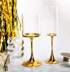 Custom Hand Blown Cylinder Wine Glasses Luxury Electroplating Gold Stem Wedding Party Water Goblet