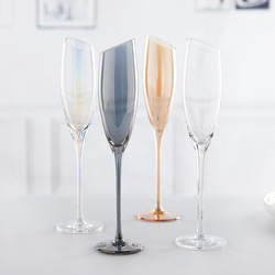 Hot Sale Classical Amber Gray Rainbow Slanted Mouth Champagne Flutes Custom Crystal Glass Goblet Reusable for Wine Drink Bar