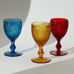 Vintage 440ml Crystal Glass Drinkware for Wedding Decorations Old Fashioned Embossed Gemstone Pattern Drinking Water Bottle
